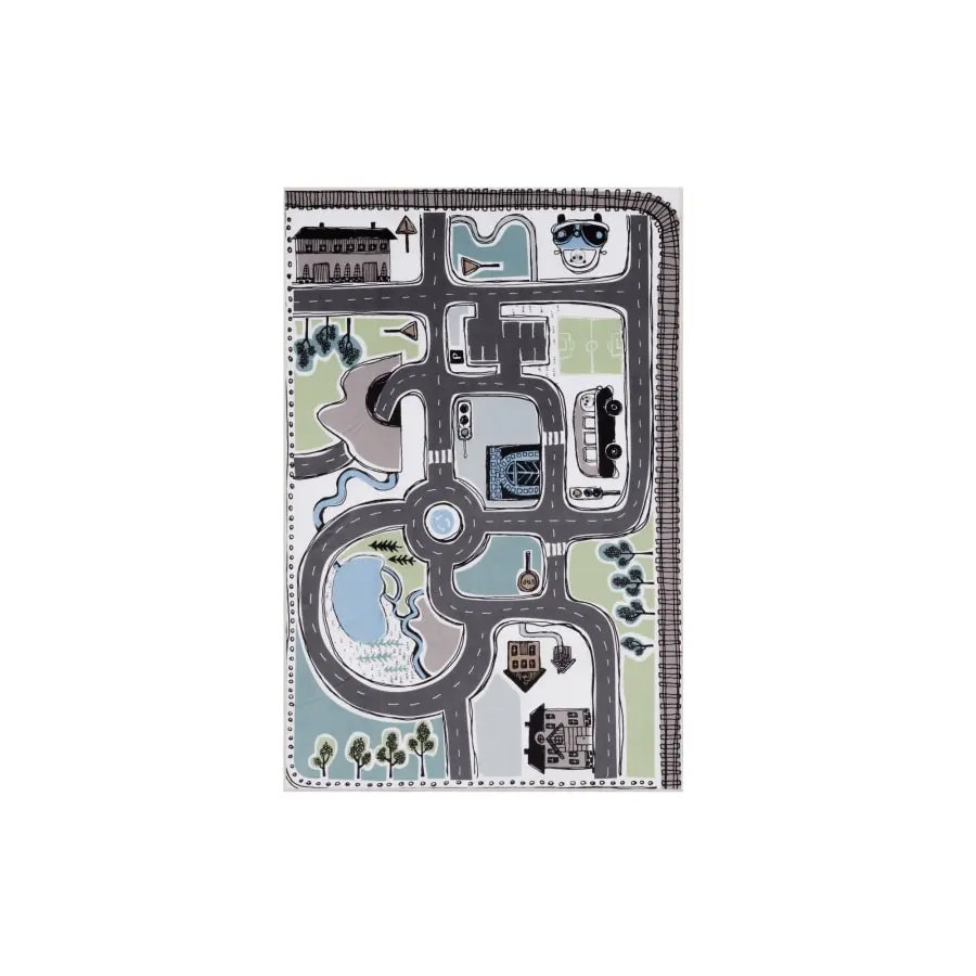 A stylish traffic mat that encourages play and at the same time serves as a great interior detail in the children’s room. The children’s play mat is easy to keep clean. The bottom of the mat has anti-slip nops to prevent slipping.