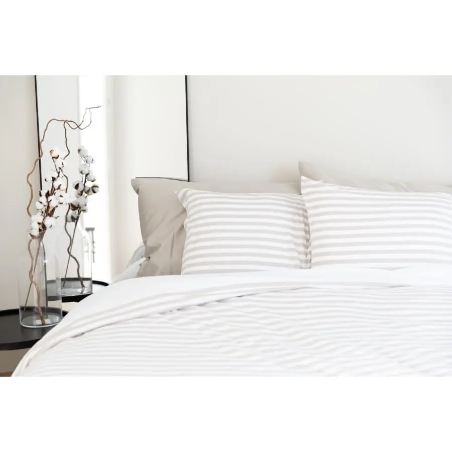 AINA Raita is a duvet cover set with a striped pattern made of 100% tricot cotton. The tricot knit feels soft, flexible and warm on the skin.
