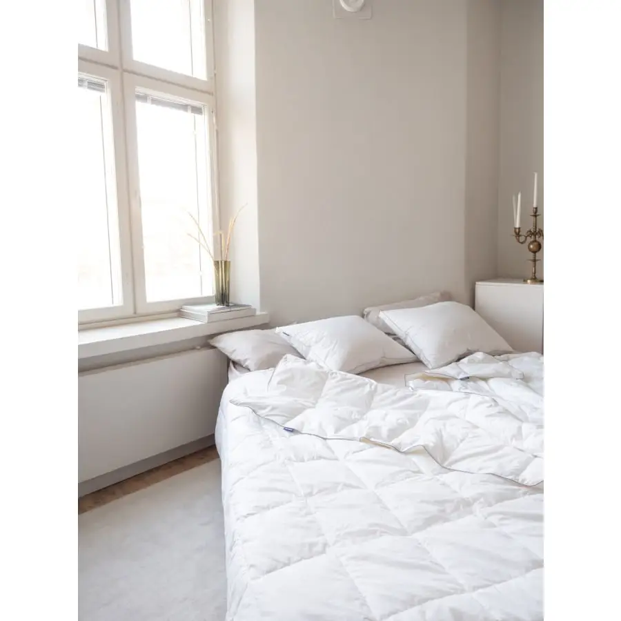 The classic normal-temperature Familon Down duvet cover is fluffy and airy. Down naturally has excellent heat regulation ability and is uniquely breathable. The cover is the finest cotton percale. With the Familon Untuva blankets and pillows, you will gently drift off to a gentle sleep – towards the feather islands. RDS certified down used in the blanket.