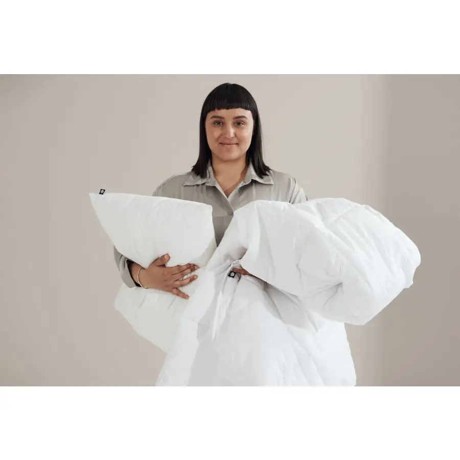 The Familon Superior pillow is a plush, down-feeling pillow that is also suitable for vegans. The Superior pillow brings hotel-style luxury to the bedroom. The Superior pillow is filled with down-like, malleable polyester microfibre and its cover is organic cotton twill.