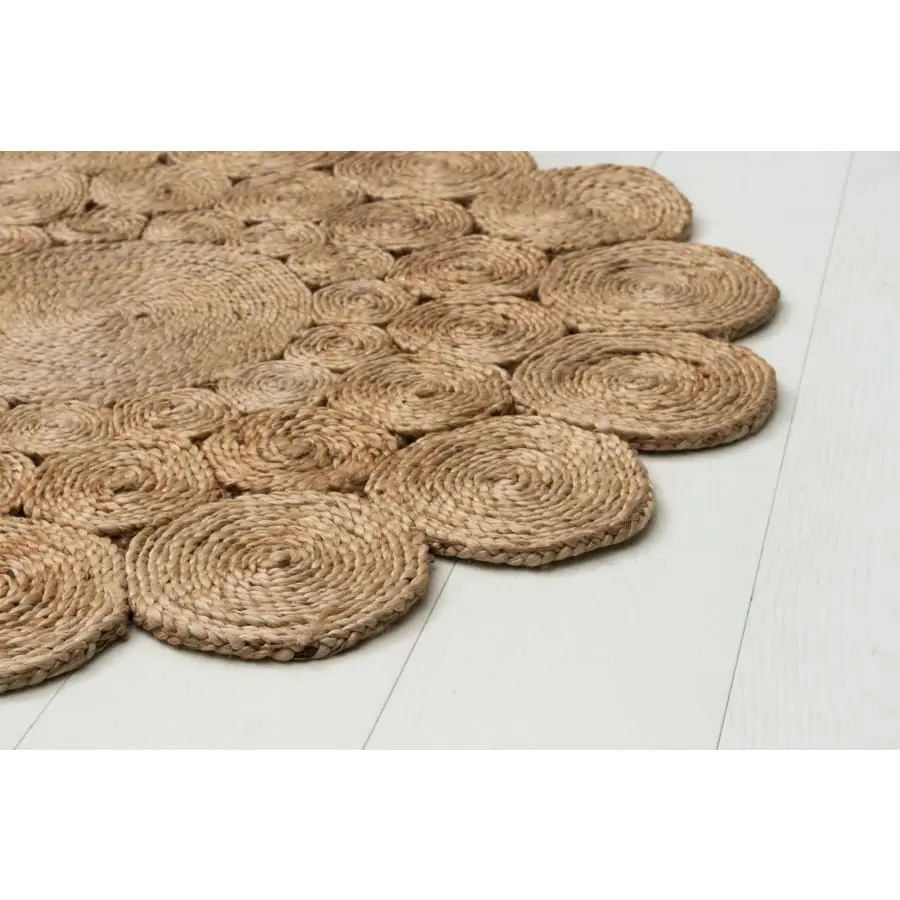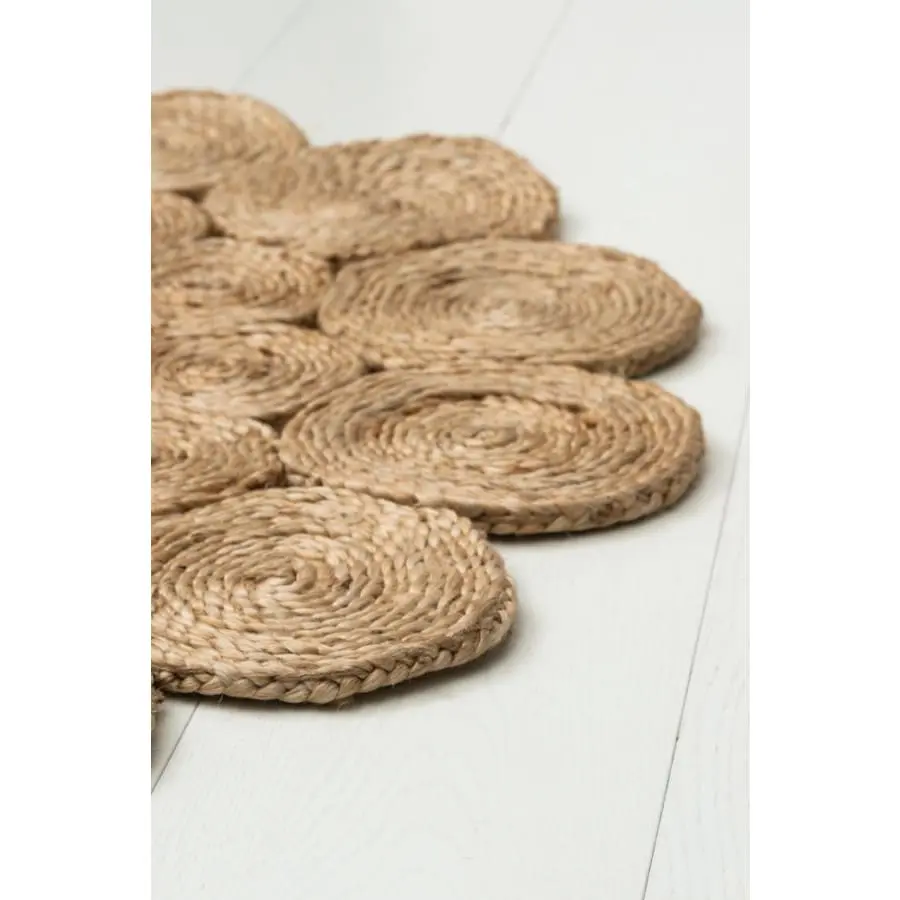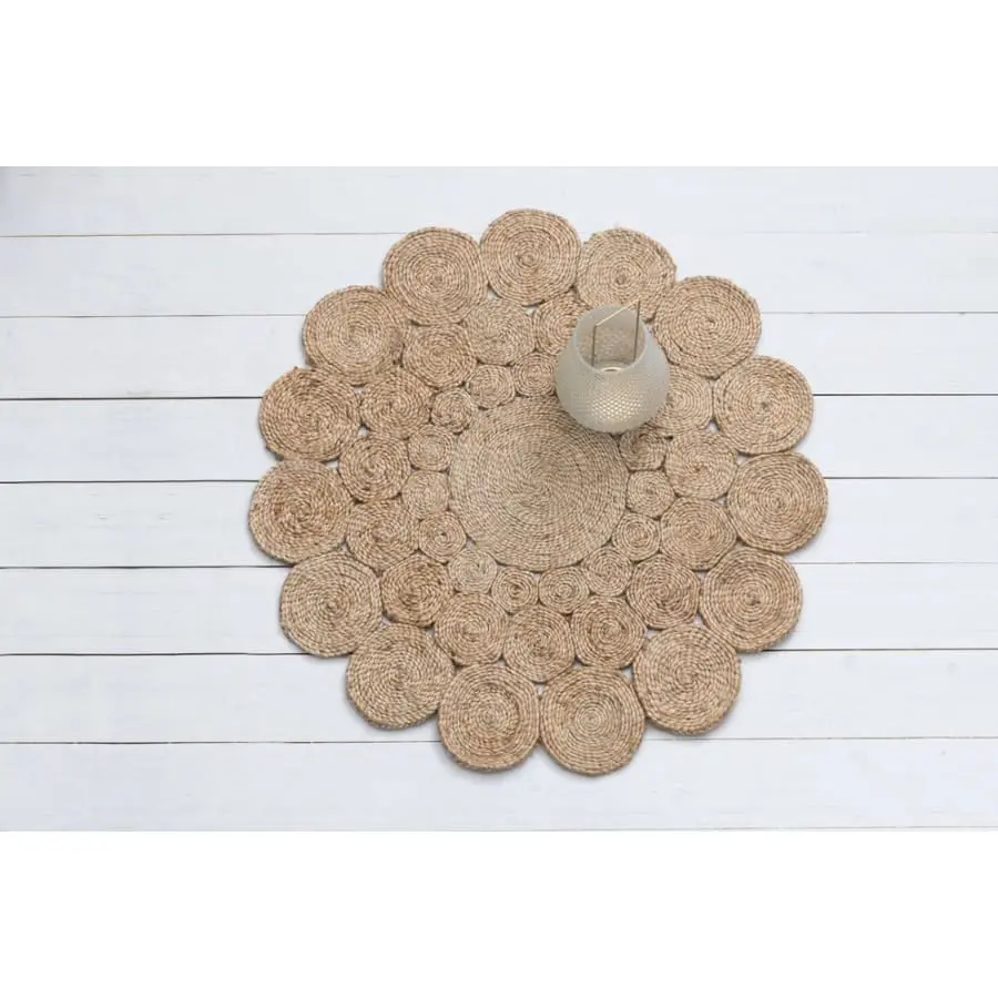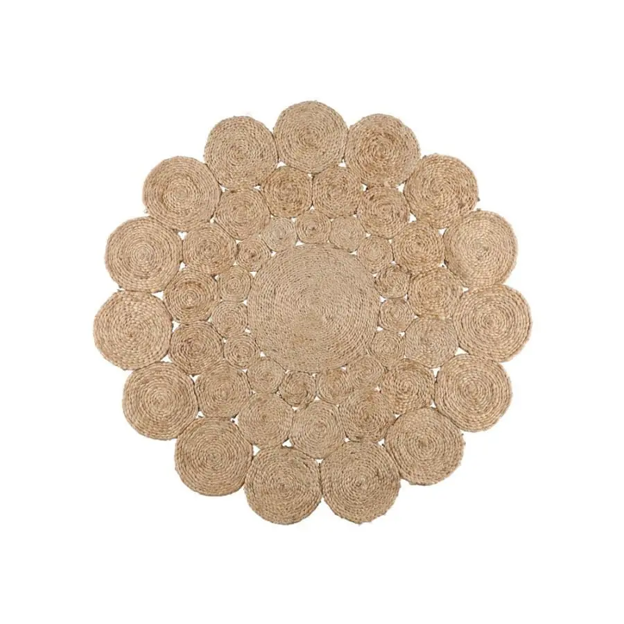 The Pyörre rug is hand braided jute, which has been skilfully worked into circular patterns. The rug is thick and feels comfortable underfoot. Funny swirled edges. Jute is an environmentally friendly and sustainable choice as it is a biodegradable and renewable material. Suitable for indoor use, but also for covered outdoor areas such as balconies and terraces. Material: 100% jute, thickness 1.5 cm, weight 4,300 g/m² Care instructions. Hand wash or professional flatwash 20 degrees.