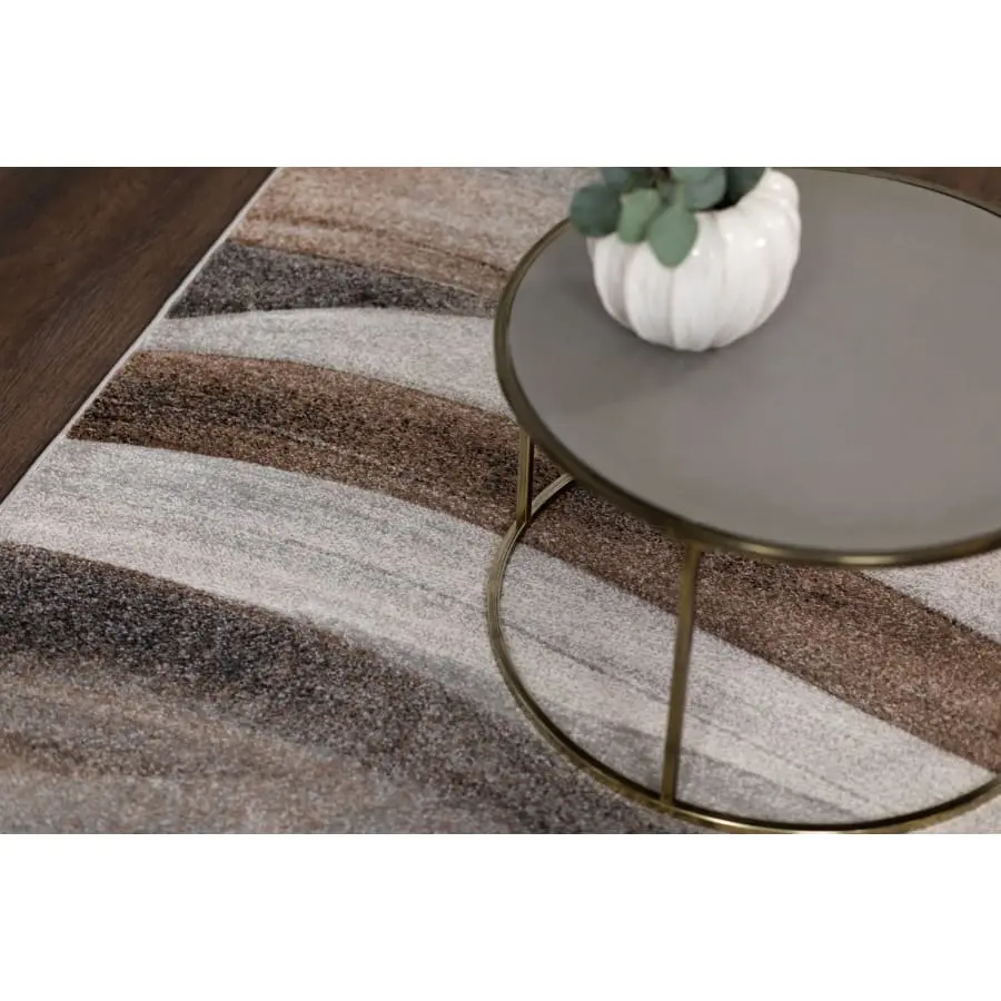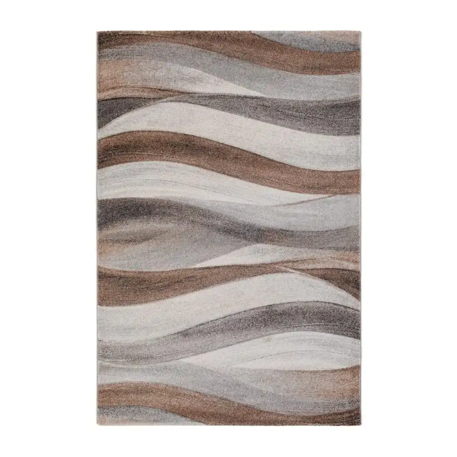 Rubin Wave är en fritidsmatta med ett behagligt vågmönster i natur, grått och silver.