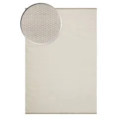 Boarp is a timeless beauty handwoven in 100% New Zealand wool. Woven in white with a sand-coloured board finish. The rug features a delicate textured pattern with decorative langetting to match the color of the rug.