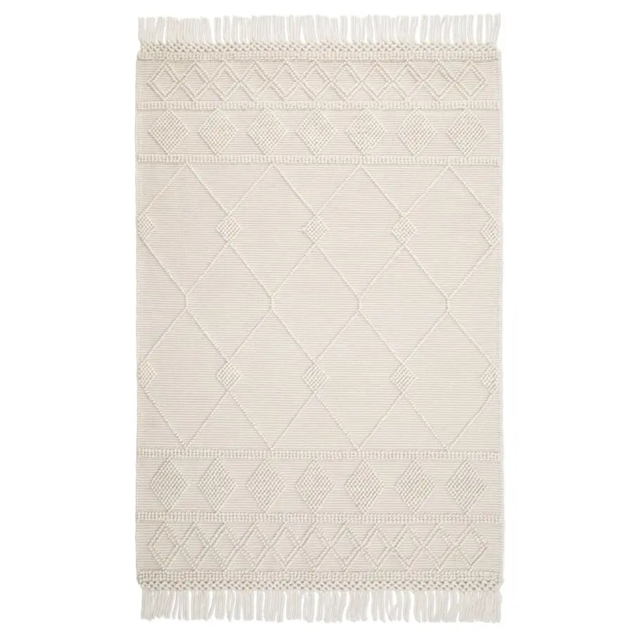 Nepal is a hand-woven wool rug. It is woven with a high/low effect, which means that the pattern in the carpet really stands out and gives additional character. The card sides are decorated with a decorative fringe. As the Nepal wool rug is handwoven, small deviations in pattern, color and size may occur. This means that all carpets become personal and unique and fit like a chameleon into many homes and interior styles.