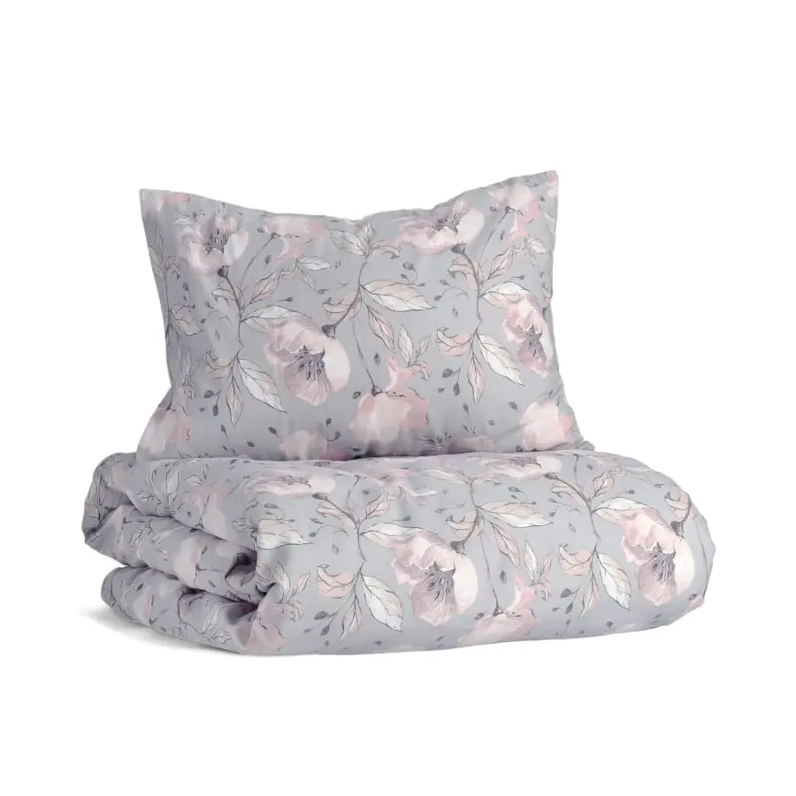 Lakansetet har en vacker blommig design. Ett enkelt påslakanset innehåller ett örngott och ett dubbelt påslakanset innehåller två örngott.
