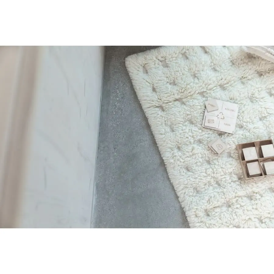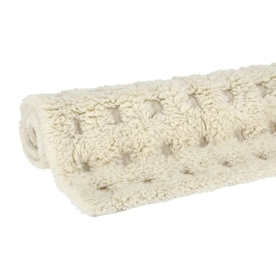 En mjuk ullmatta ger värme och hemkänsla till interiören.