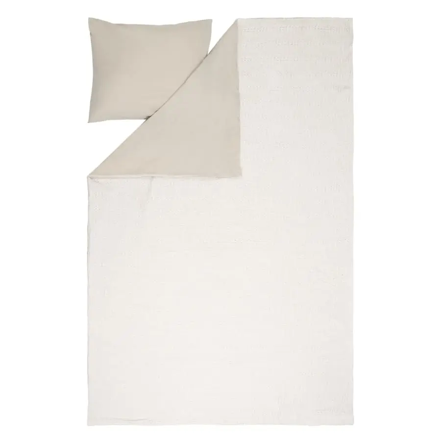 Luhta Homes Polka påslakanset fungerar även som överkast. Den andra sidan av påslakanet är stentvättat våffeltyg, som ser bra ut när det används som filt. I setet ingår ett lakan 150×210 cm och ett slätt örngott 53×60 cm.