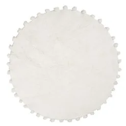 Pouta är en mjuk barnmatta med kort lugg. Kanten på den runda mattan har roliga tofsar. Mattan måste hållas för sig själv.
