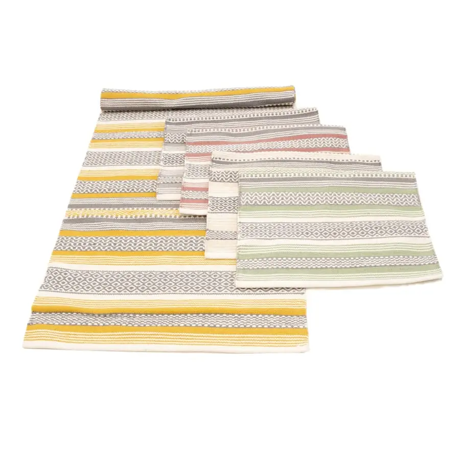En traditionell randig bomullsmatta för alla bostadsområden i hemmet. Mönstret som vackert kombinerar traditionella ränder och aktuella färger ger mattan ett fräscht utseende