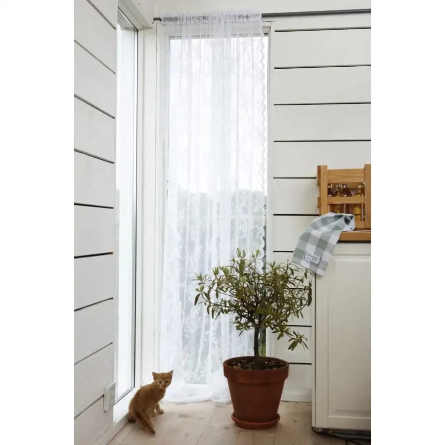 Tunna, genomskinliga spetsgardiner i spögränden.