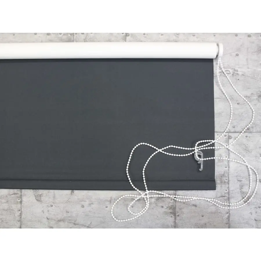 A blackout roller blind that fits every home. The dense polyester fabric of the blind is blackout. The standard height of the blind is 180 cm (height from the top edge of the tube to the bottom slat). The blind has a white side adjustment mechanism on the right side. The bottom edge has a stitched alley with a white, oval-shaped bottom strip. Thanks to it, the fabric stays tidy. The stated width measurements are the total width of the roller blind. The width of the fabric is – 4 cm and the thickness of the tube is 25-36 mm depending on the width. You can narrow the blinds yourself at home. NOTE! The roller blind must not be pulled below the indicated height – it may cause the fabric to detach from the pipe. At least one full turn of the fabric must remain around the tube when the curtain is lowered. If the fabric comes off as a result of incorrect use, the manufacturer is not responsible for the damage.