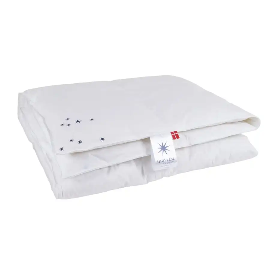The medium-warm Neptune down blanket is also suitable for people with sensitive skin and dust mite allergies. Filled with high-quality European duck down and small feathers. Neptune blankets are manufactured according to the strictest Oeko-Tex 100 standard.