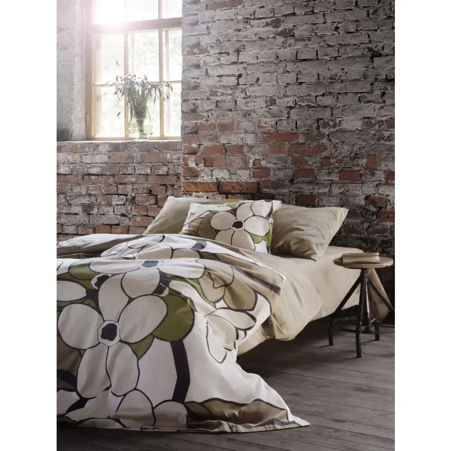Kukkatarha-kuosi on näyttävä tulkinta kukkakuosista. Klassikkokuosi henkii 70-luvun tunnelmaa ja sopii monenlaisiin sisustuksiin.