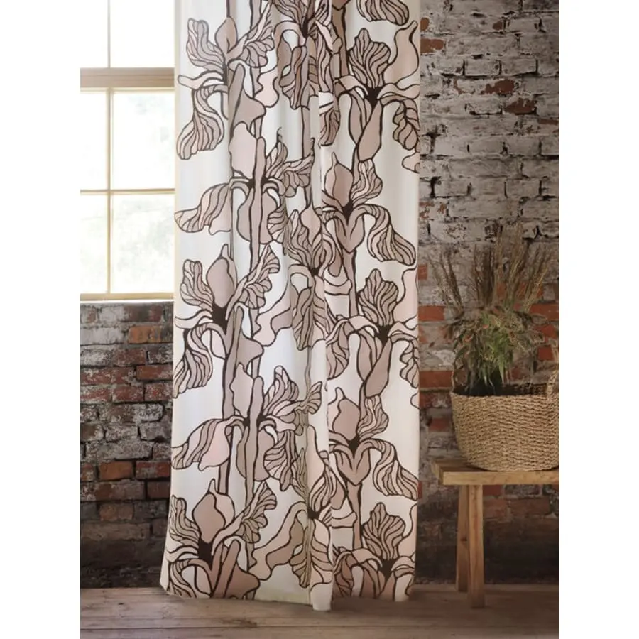 The starting point for the Kurjenmiekka pattern is the graphic shapes of the garden’s kurjenmiekka, which, as a cluster, mix and form a surface. Individually packed ready-made curtain, shirring strip and rod hole at the top edge.