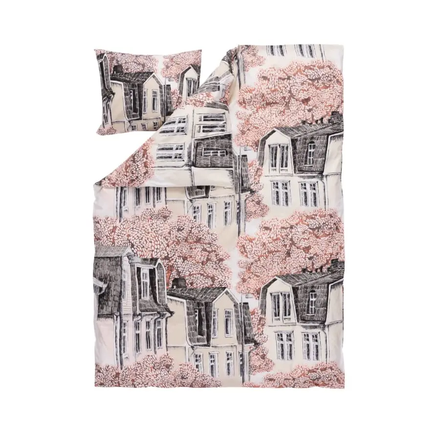 A single duvet cover is 150 cm wide and 210 cm long. One pillow case is included in the bed set. The size of a pillow case is 50×60 cm.