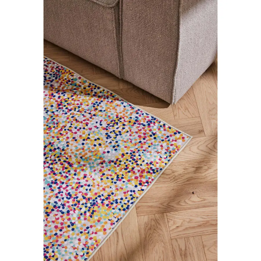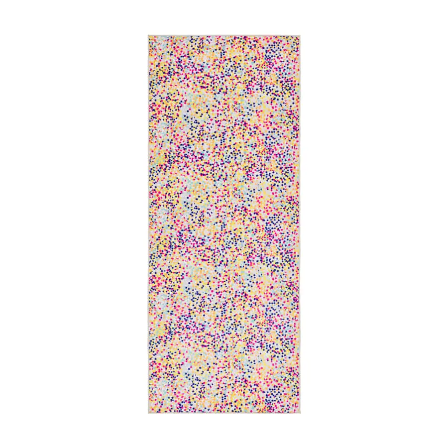 This rug is made of 100% polyester and the pattern is digitally printed. Digital printing allows us to use the most vibrant colors and intricate designs. The rug has a luxurious shine and a silky feel.