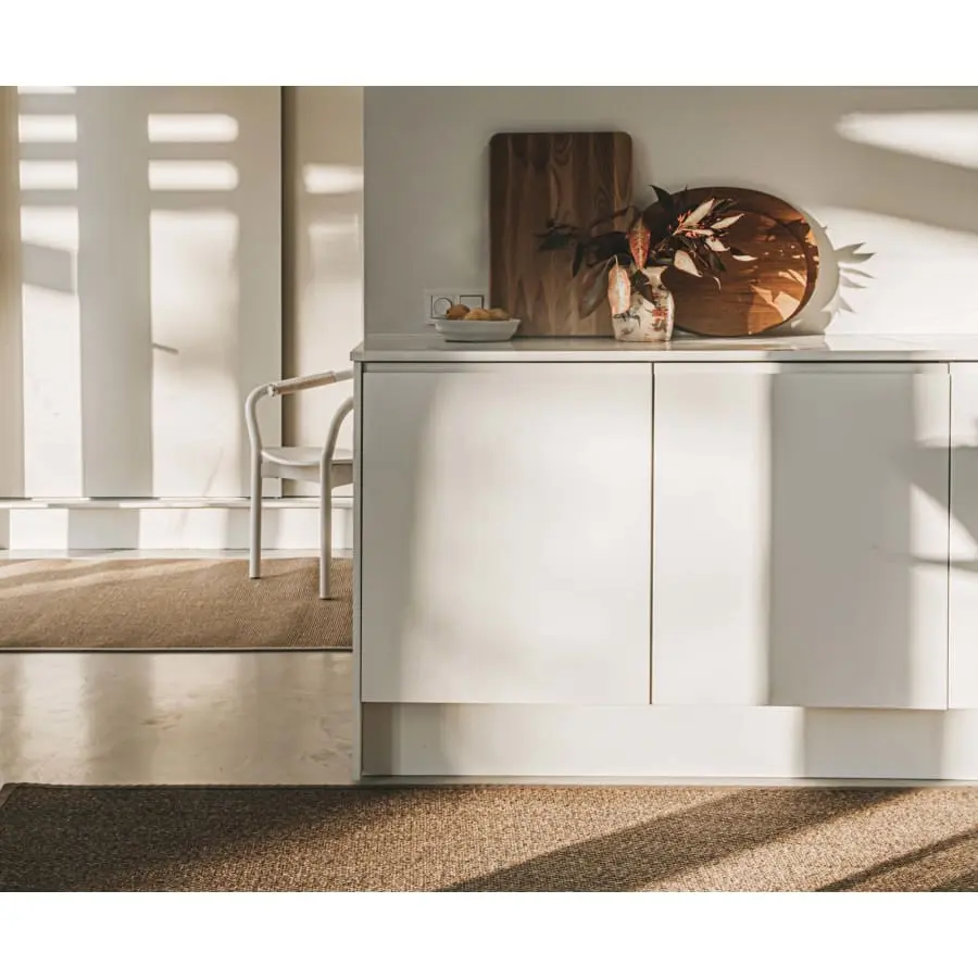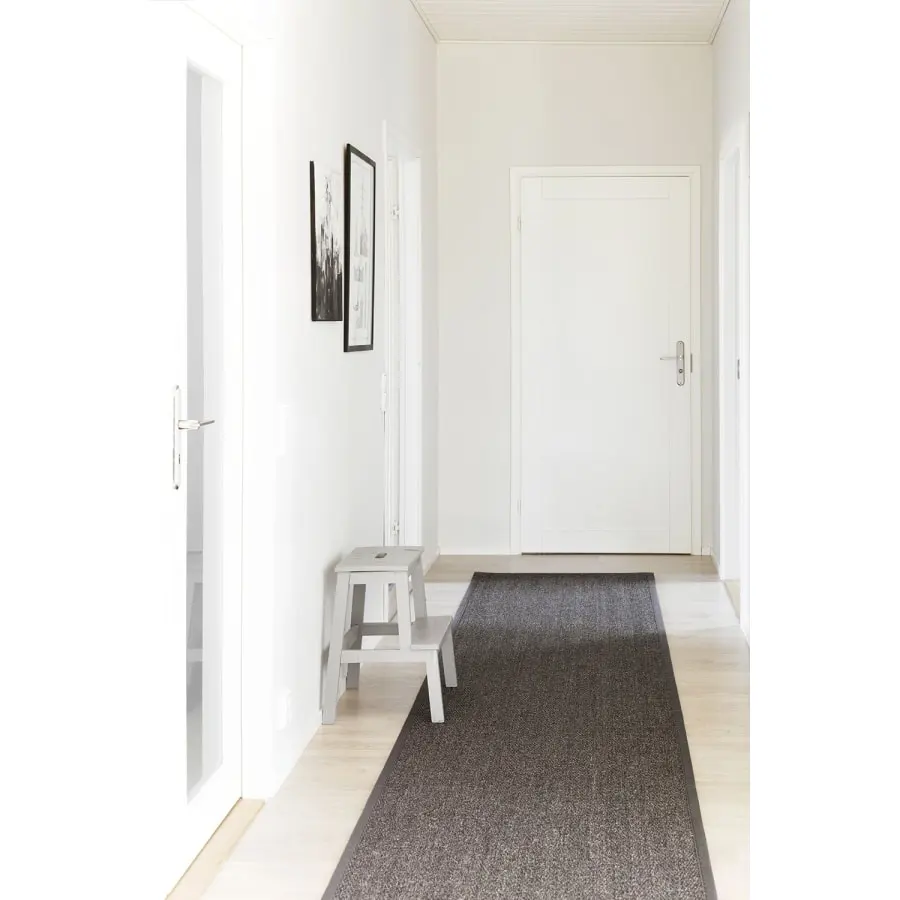 The shine of sisal and the traditional herringbone pattern give the Barrakuda rug a sophisticated look. It is well suited for corridors and vestibules as well as cabinets and meeting rooms in public spaces, also for glazed terraces and balconies. The finished carpet is covered with a 70 mm cotton edging. The EVA base makes the mat firm and non-slip. Due to shrinkage, sisal carpet is not recommended for air closets or damp rooms.
